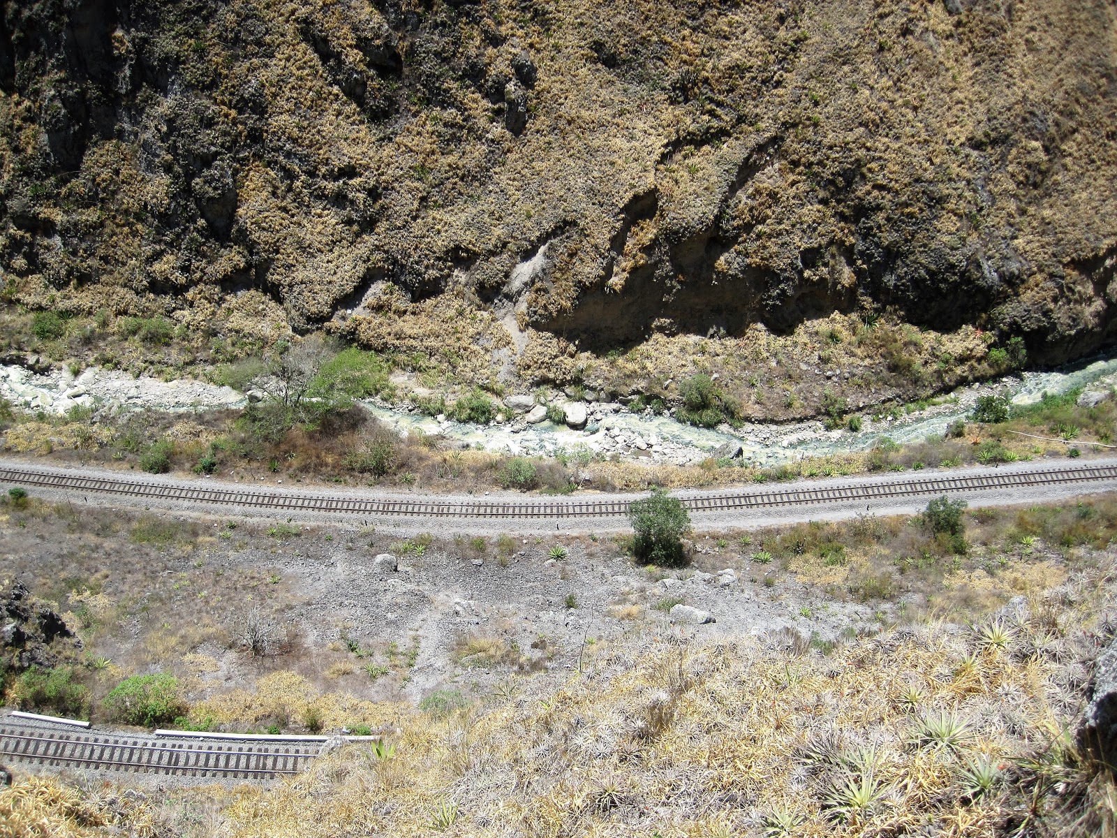 From Montanito we headed inland to the mountains and the small town of Alausi. In 1895, the President of the Republic of Ecuador announced that a new railroad would be built to connect the coastal city of Guayaquill with the capital, Quito, in the highlands. Due to frequent earthquakes, heavy rains, wildlife (jaguars and poisonous snakes), malaria and yellow fever, building of the railway was not an easy task. Add into the mix the change in altitude from sea level to 2,800m and a massive lump of pure rock known as the Devil's Nose (Nariz del Diablo) meant that engineers needed to devise a series of steep curves and switchbacks where the train shunts back and forth therefore allowing it to climb the 1-18 gradient. The trainline operated until 1997 when a number of landslides devastated the tracks, closing the entire line. Now, there is a stretch that is open for tours and the views were amazing